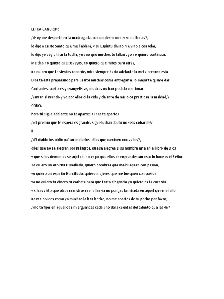Hoy me desperté a la madrugada con un deseo inmenso de llorar Hoy me desperté a la madrugada con un deseo inmenso de llorar Le dije a Cristo Santo que me hablara y su Espíritu divino me vino a consolar le dije yo voy a tirar la toalla yo veo que muchos te fallan yo no quiero continuar me dijo no quiero que te vayas no quiero que mires. Le dije yo voy a tirar la toalla yo veo que muchos te fallan yo no quiero continuar. Hoy me desperte en la madrugada letra Canciones con hoy me desperte en la madrugada por letras todas las canciones de hoy me desperte en la madrugadaVe la lista de todas las canciones viejas y nuevas con letras de hoy me desperte en la madrugada directas de nuestro buscador y escuchalas online.