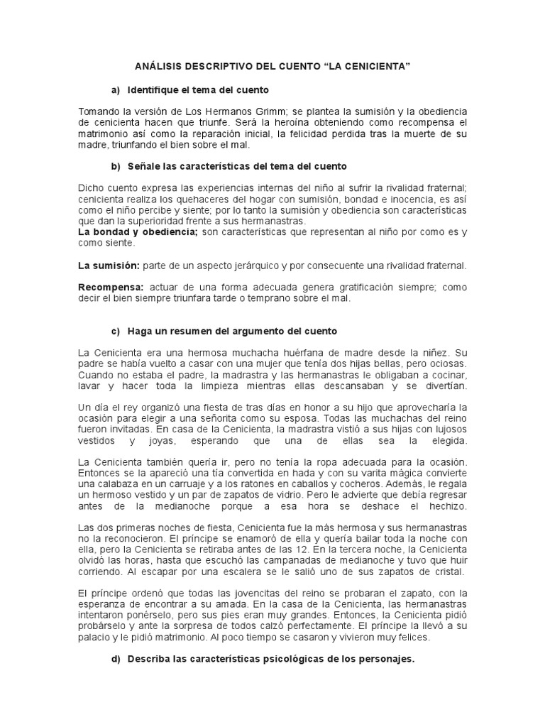 Analisis Del Cuento La Cenicienta Pdf