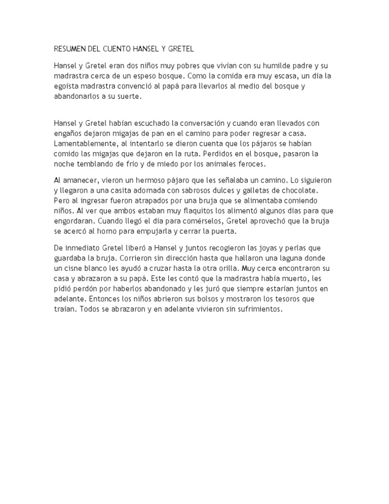 Resumen Del Cuento Hansel Y Gretel Pdf Hansel Y Gretel