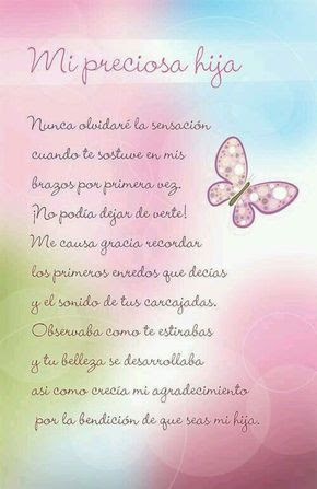 Usuario favorito de este poema. Hija mía es la primera vez que escribo un poema pero por este hermoso día quería sorprenderte con algo especial y diferente porque la ocasión lo merece cumples un año más. Desde que soy madre siento como si una nueva persona hubiera nacido en mí.